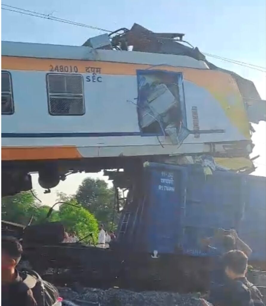 गेवरा रोड से रायपुर जा रही लोकल आउटर पर खड़ी मालगाड़ी से भिड़ी