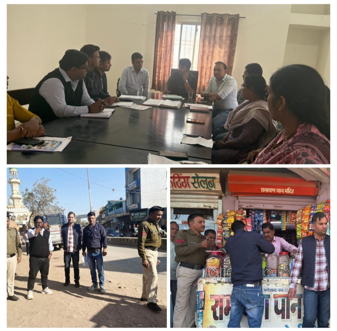 बिलासपुर। राष्ट्रीय तंबाकू नियंत्रण कार्यक्रम के अंतर्गत कलेक्टर संजय अग्रवाल के निर्देश पर तखतपुर एसडीएम नितिन तिवारी के मार्गदर्शन में बीएमओ डॉ. उमेश कुमार साहू व पुलिस विभाग द्वारा गठित संयुक्त टीम द्वारा कोटपा अधिनियम 2003 की धारा 4 एवं 6 के तहत तखतपुर में व्यापक निरीक्षण अभियान चलाया गया।